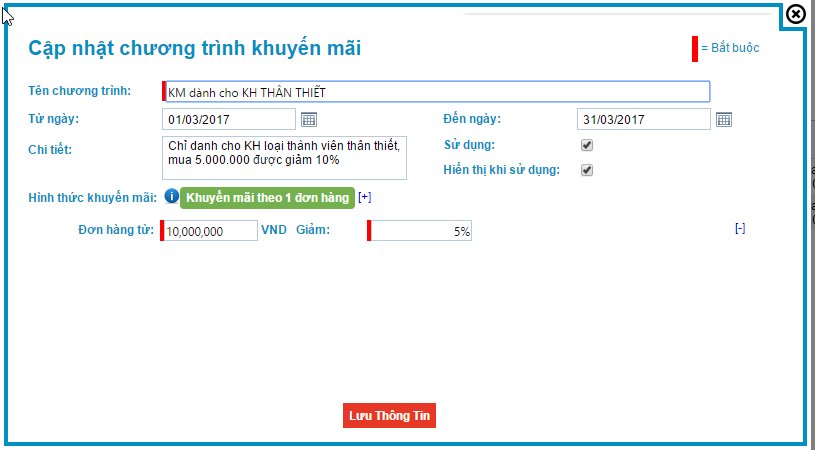 • Khuyến mãi giảm giá theo % hoặc số tiền cố định