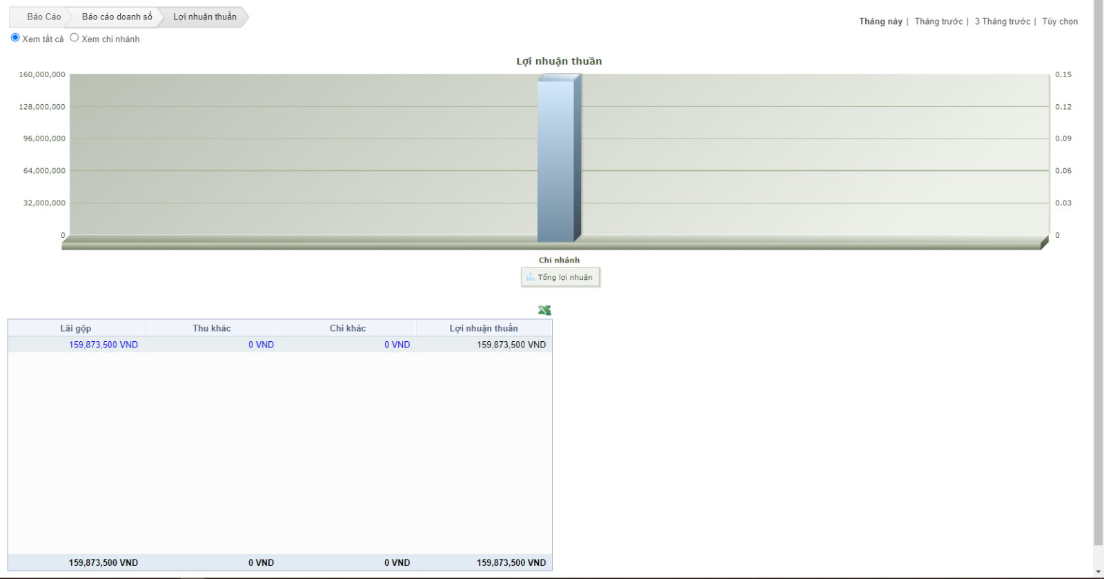 - Báo cáo theo tháng, 3 tháng hoặc thời gian tùy chọn