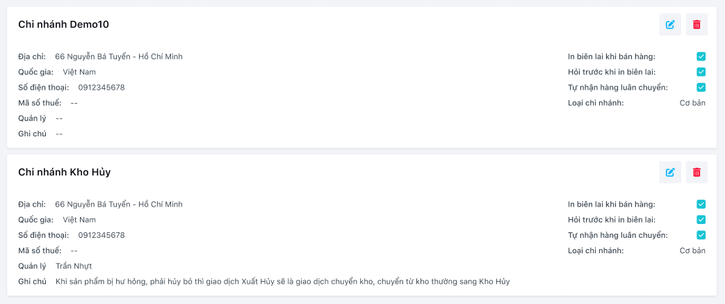 - Dễ dàng xuất - chuyển sản phẩm từ kho chi nhánh này sang chi nhánh khác