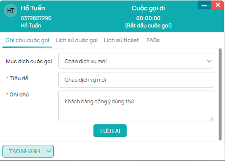- Cho phép xem thông tin khách hàng, tạo hóa đơn, ghi chú, yêu cầu hỗ trợ hay đặt hàng nhanh ngay trên popup
