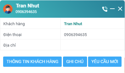 Popup thông tin khách hàng khi có cuộc gọi vào/ra