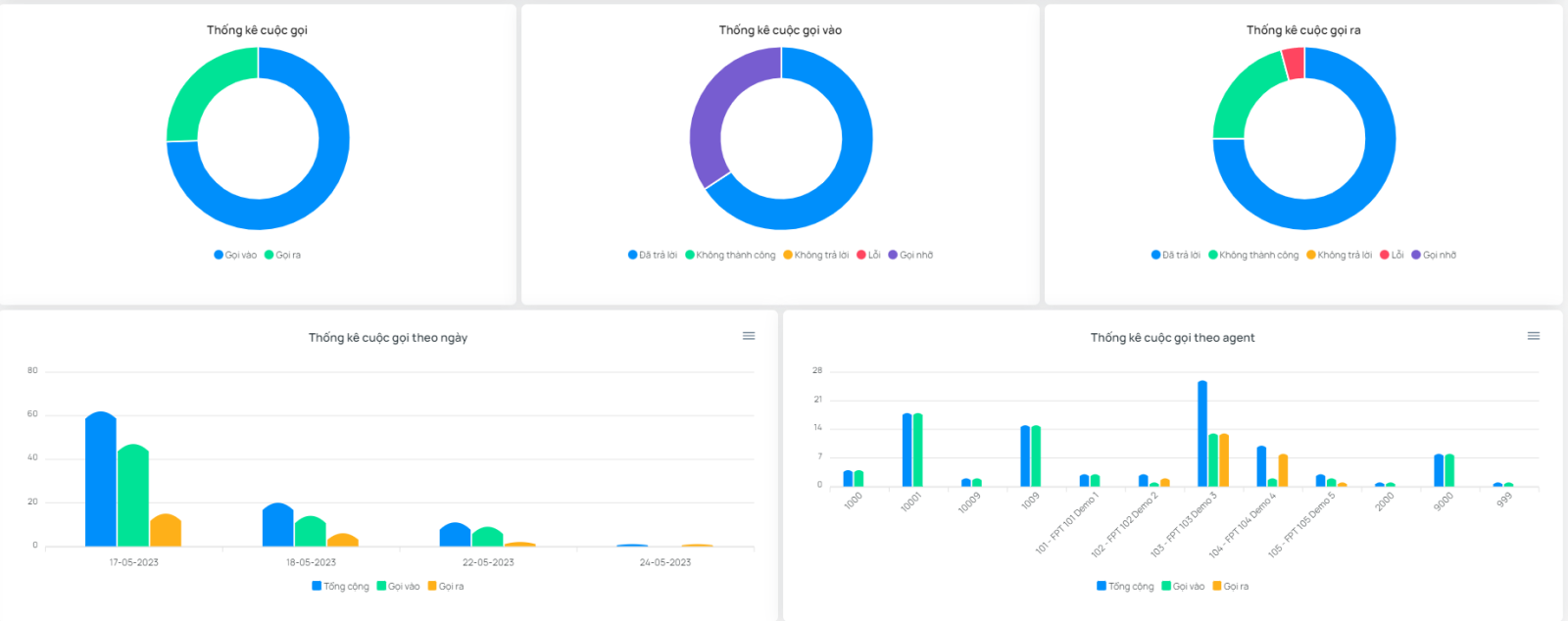 - Giám sát hàng đợi, số cuộc gọi đang chờ, agent trong hàng đợi, số cuộc gọi đang nói chuyện