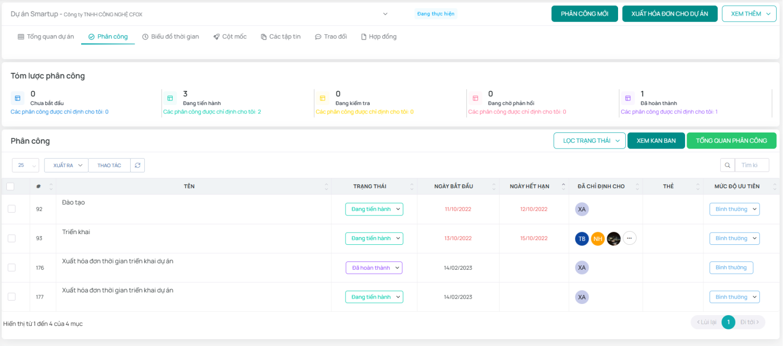 - Nắm rõ tiến độ dự án qua các phân công công việc.