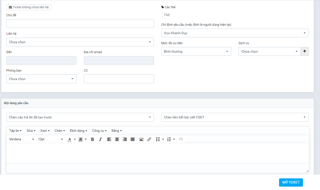 Khách hàng tạo yêu cầu hỗ trợ dễ dàng