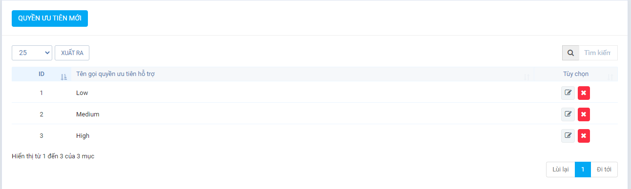 • Quản lý mức độ ưu tiên yêu cầu hỗ trợ