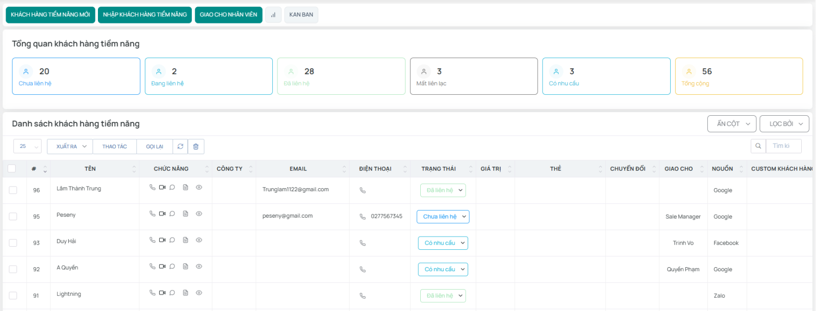 • Quy định trạng thái để phân loại khách hàng tiềm năng.