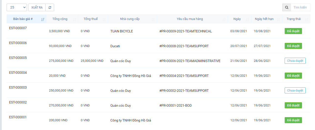 Đơn mua hàng và báo giá
