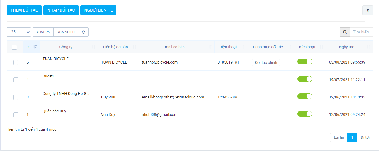 Thêm đối tác trực tiếp trên hệ thống.
